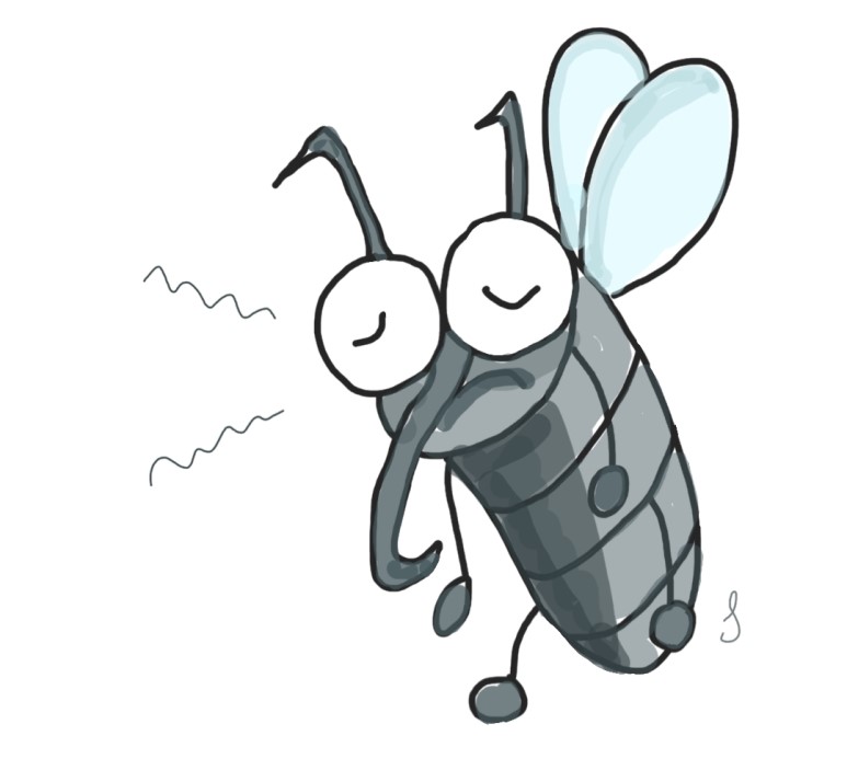 저온에 약한 모기들의 기세가 꺾인 것을 입이 삐뚤어지는 것으로 형상화한 감각적인 표현입니다.